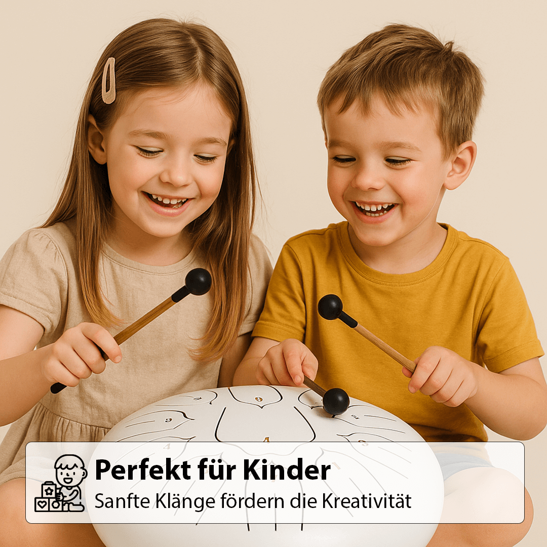 Jeder Schlag auf die Trommel erzeugt harmonische, wohltuende Klänge – ganz intuitiv.